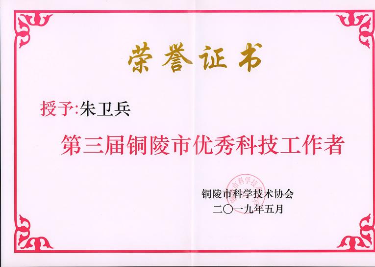 近日,銅陵市科學技術協會公布了“第三屆銅陵市優秀科技工作者”評選結果,公司總經理朱衛兵為公布的30名優秀科技工作者之一。